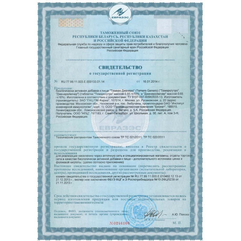 Для поддержки оптимальной функциональной активности регуляторных систем организма нейроэндокринной и иммунной, а также для общей биорегуляции организма, в том числе на аутокринном уровне, компания Peptides разработала инновационное средство «Темеро Дженеро». Это два взаимодействующих активных препарата, представляющих собой бустер основных аминокислот организма, запускающих его работу на эпигеномном клеточном уровне.
