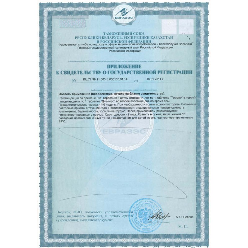 Взрослым и детям старше 14 лет принимать по 1 таблетке Темеро в первой половине дня и по 1 таблетке Дженеро - во второй половине дня во время приёма пищи. Продолжительность приёма - 4-6 недель. При необходимости приём можно повторить. Возможны повторные приёмы в течении года.