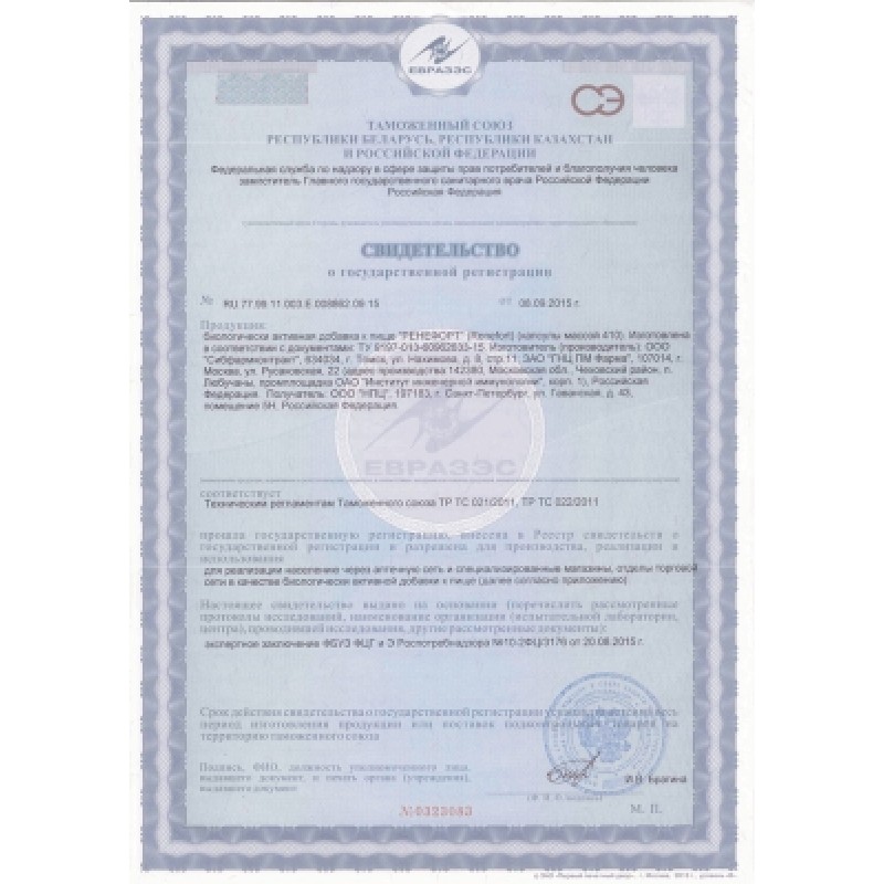 Ренефорт обладает свойствами онкопротектора, благодаря коэнзиму Q10, который способен тормозить рост злокачественных клеток, предотвращая возникновение онкологии. Дигидрокверцетин – биофлавоноидный антиоксидант, способствует скорейшему выздоровлению и повышает сопротивляемость организма к инфекционным заболеваниям. Геспередин препятствует развитию нефросклероза и почечной недостаточности. Супероксиддисмутаза - защищает кровь, а также клетки от токсического воздействия свободных радикалов.
