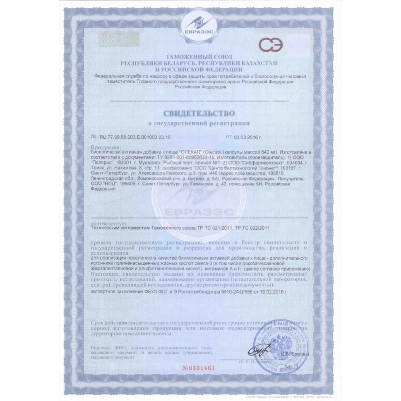 Помочь организму восполнить естественный дефицит Омега-3 (от 1 до 1,5 г Омега-3 ПНЖК ежедневно) может препарат Олекап. Он содержит натуральные ПНЖК Омега-3 из жира глубоководного лосося, а также витамин Е в высокоусвояемой форме.