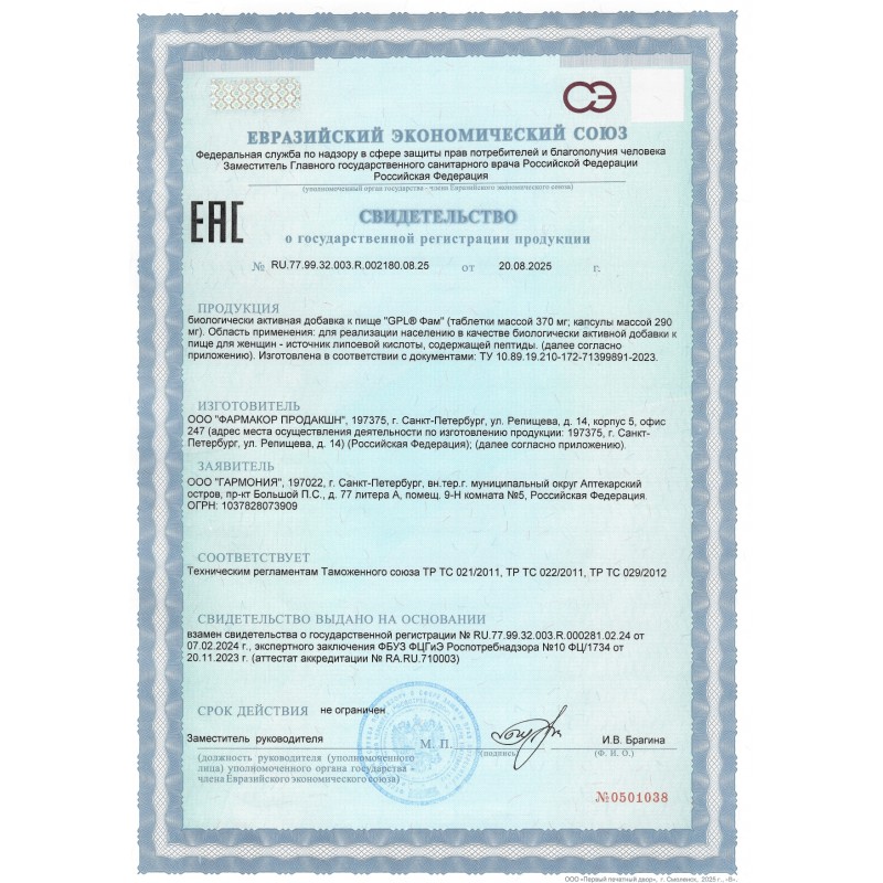 GPL® Femme – это новаторский комплекс для женского здоровья, основанный на натуральных пептидных экстрактах. Разработанный в сотрудничестве с Санкт-Петербургским институтом биорегуляции и геронтологии и компанией Peptides, этот продукт направлен на минимизацию постковидных изменений и улучшение работы сосудистой, нервной, эндокринной и половой систем у женщин. GPL® Femme способствует гармонизации организма, продлению молодости и поддержанию здоровья благодаря физиологичному восстановлению нейроэндокринной оси. Комплекс восстанавливает обменные процессы и борется с инсулинорезистентностью, укрепляет иммунитет и регулирует работу эпифиза и надпочечников. Он также помогает снизить уровень стресса и предотвратить раннее истощение репродуктивной системы, замедляя процессы старения. Состав GPL® Femme разработан с учетом особенностей женского организма, что позволяет достичь оптимального баланса и общего благополучия.