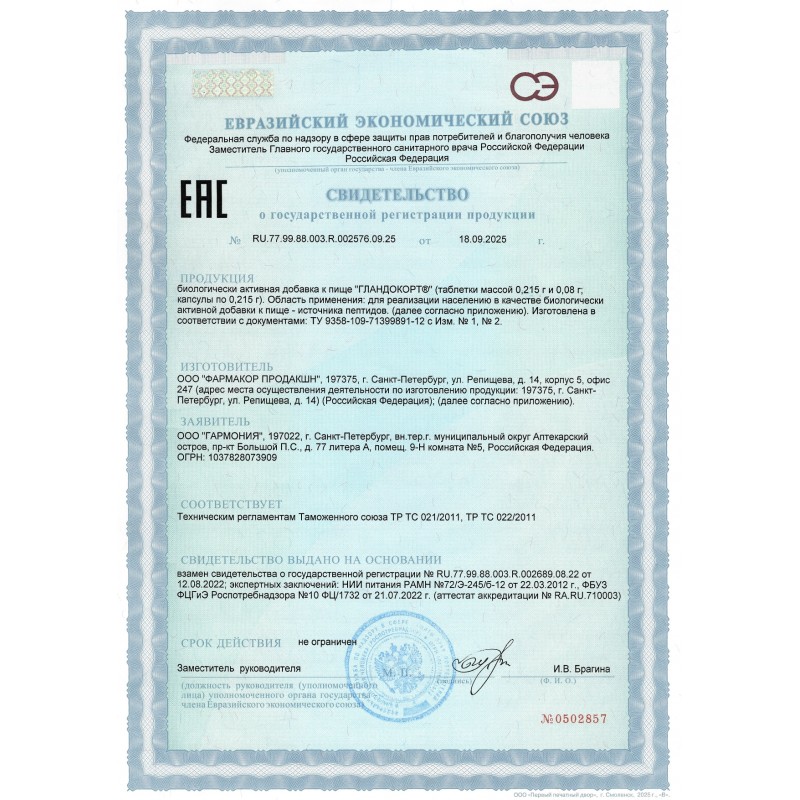 Натуральные пептиды надпочечников - Гландокорт 60 капсул