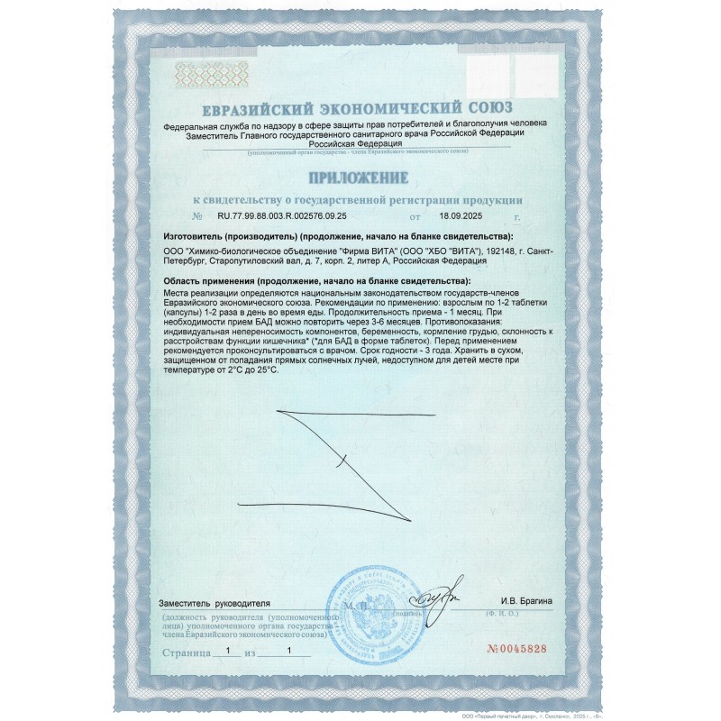 Суточная доза содержит: (2 капсулы), 20 мг пептидного комплекса А-17.