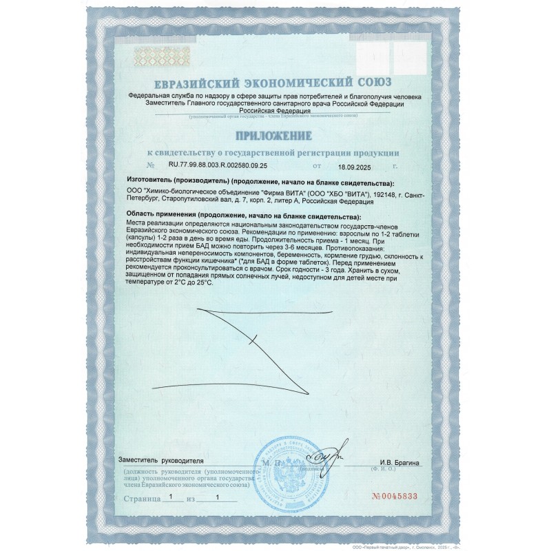 Суточная доза содержит: (2 капсулы), 20 мг пептидного комплекса А-21.