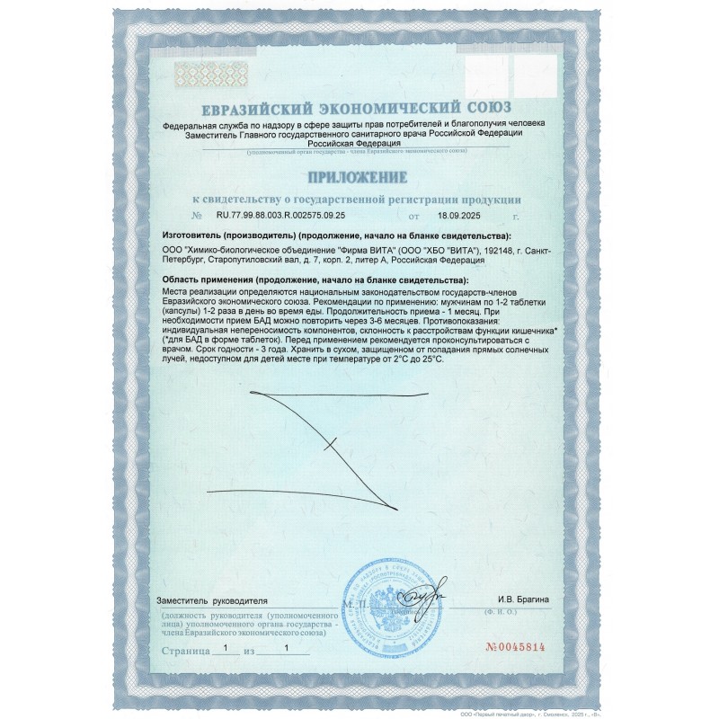 Суточная доза содержит: (2 капсулы), 20 мг пептидного комплекса А-16.