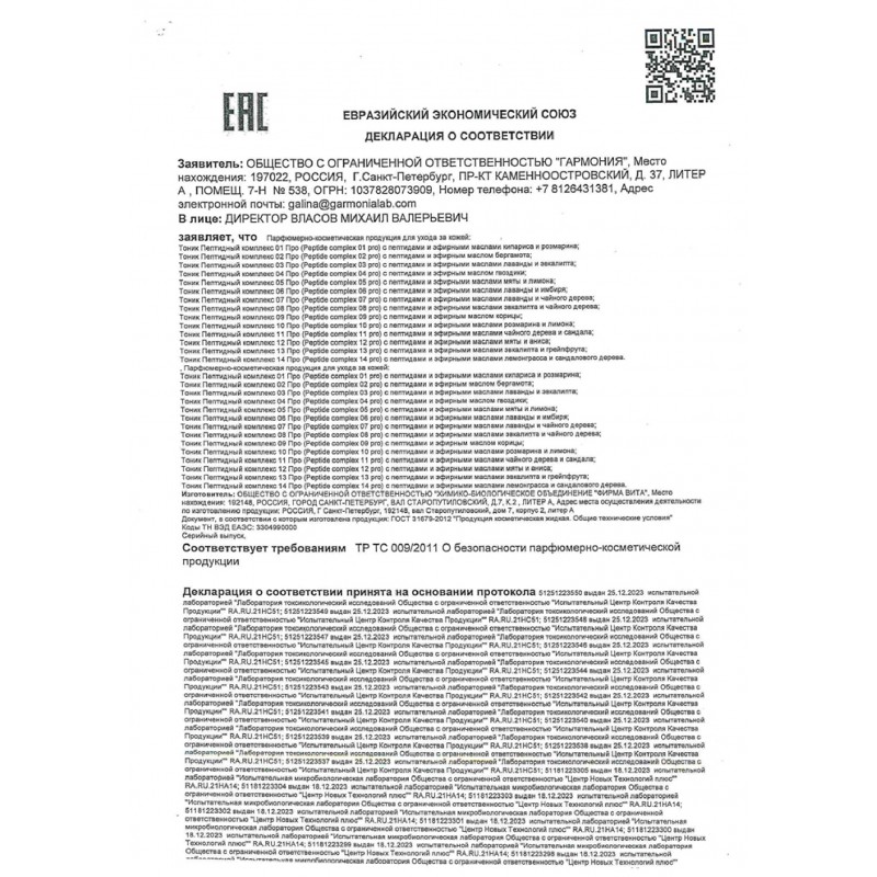 Одновременно возможно использование до 6 пептидных комплексов.